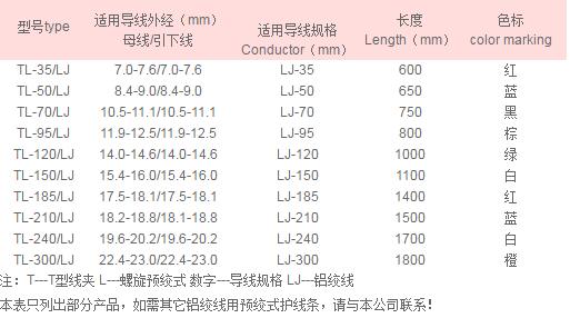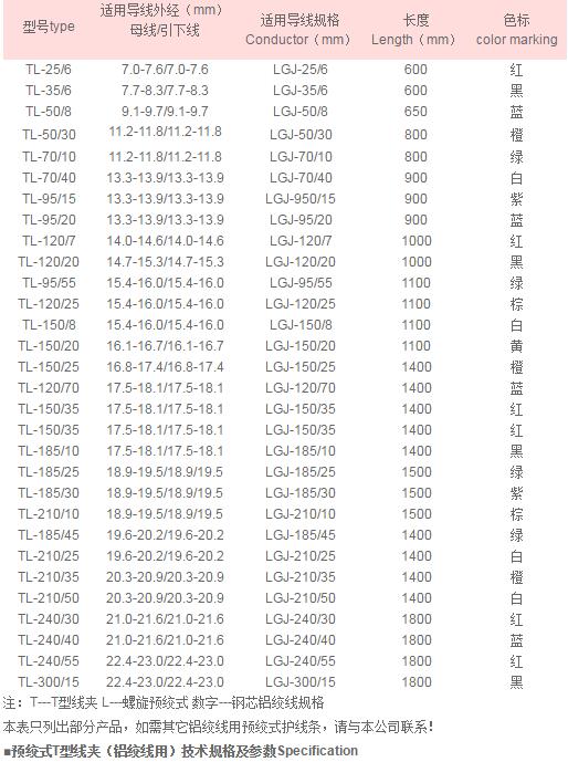 ■预绞式T型线夹(钢芯铝绞线用)技术规格及参数Specification 河间市天恒电力器材有限公司