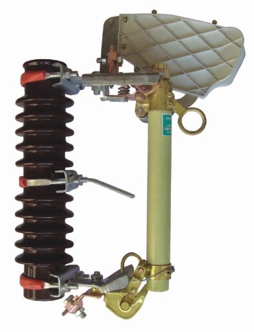 熔断器是由基座和消弧装置两大部分组成,灭弧管下端装有可能转动的弹簧支架,始终使熔丝处于紧张状态,以保证灭弧管在合闸位置的自锁,线路与变压器过载或短路中,熔丝熔断,熔丝迅速从灭弧管中抽出,灭弧管设计为逐级排气式解决在同一熔断器上开断大小电流的矛盾。