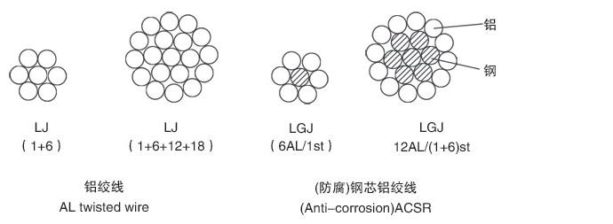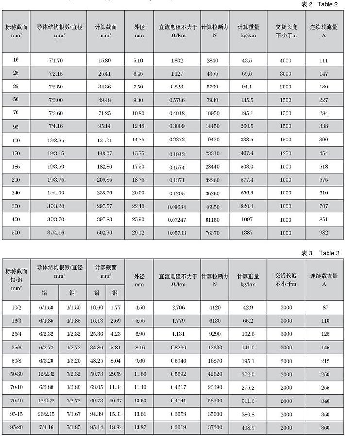 铝绞线规格如表2,(防腐)钢芯铝绞线规格如表3