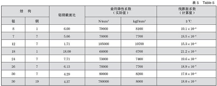 4. 钢芯铝绞线的弹性系数和线膨胀系数见表5,不同结构的铝钢截面比也列于表5