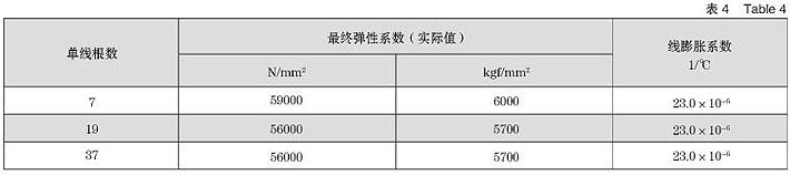 3. 铝绞线的弹性系数和线膨胀系数如表4