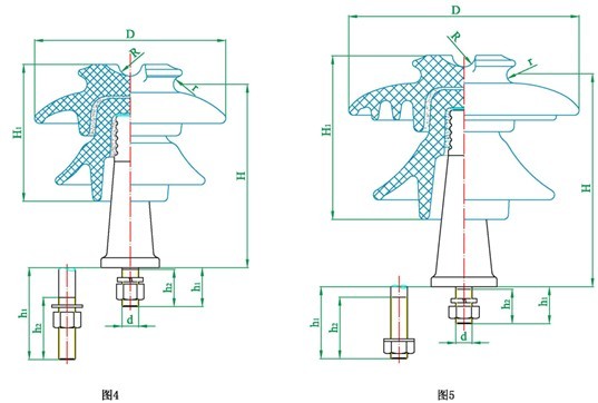 绝缘子按结构形式分为:胶装式和锌套螺纹连接式两种。胶装式是瓷件直接胶装水泥与脚连接,钢脚胶入瓷件部分压有深槽,以防钢脚松动,钢脚顶端与瓷件之间垫有弹性衬垫。锌套螺纹连接式是瓷件内孔先通过水泥胶装以锌螺套,再靠此螺套螺纹与钢脚连接。锌螺套有缓冲作用,也便于更换瓷件。也有采用靠瓷螺纹机械连接的。