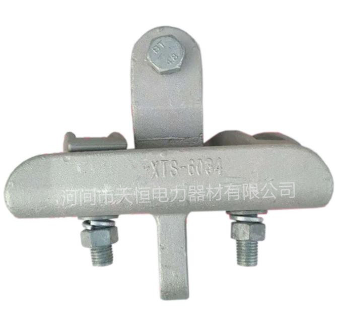 双导线跳线悬垂线夹XTS-6034常有的定型产品,现在保留了U型螺栓式样(通常叫船型线夹),它是由挂架U型螺栓,可锻铸铁制造的线夹船体、压板组成。另一种就是预绞式悬垂线夹。悬垂线夹用于将导线固定在直线杆塔的绝缘子串上,或将避雷线悬挂在直线杆塔上,亦可用于换位杆塔上支持换位导线以及耐张转角杆塔跳线的固定。