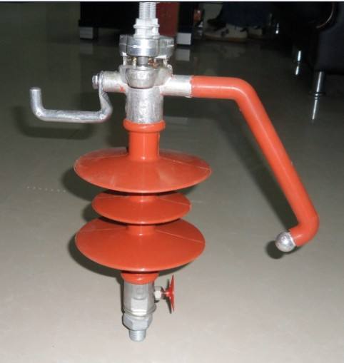 2. 引弧棒和夹线金具装配连接成一体,当雷击发生时,引弧棒和下钢脚之间引起闪絡放电,形成短路通道,接续的工频电弧移动到引弧棒和钢脚之间燃烧,以保护导线免于烧伤.因引弧棒绕开伞裙并调至*佳放电间隙,放电效果更好并防止烧坏绝缘子伞裙.
