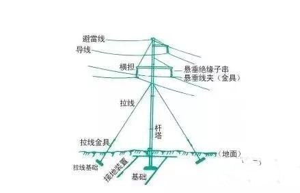 避雷线:避免雷直接击落在输电线上。